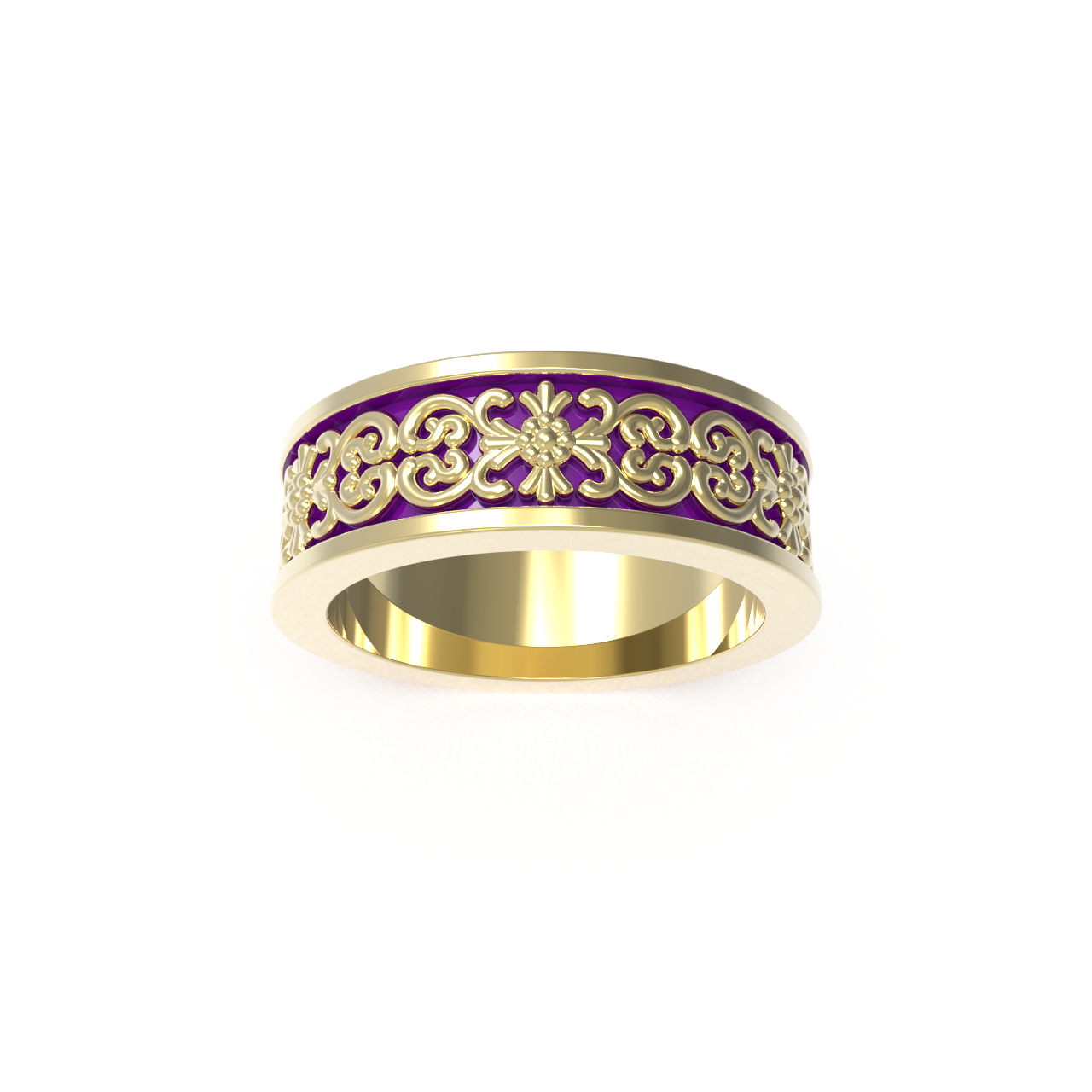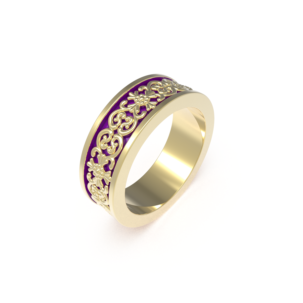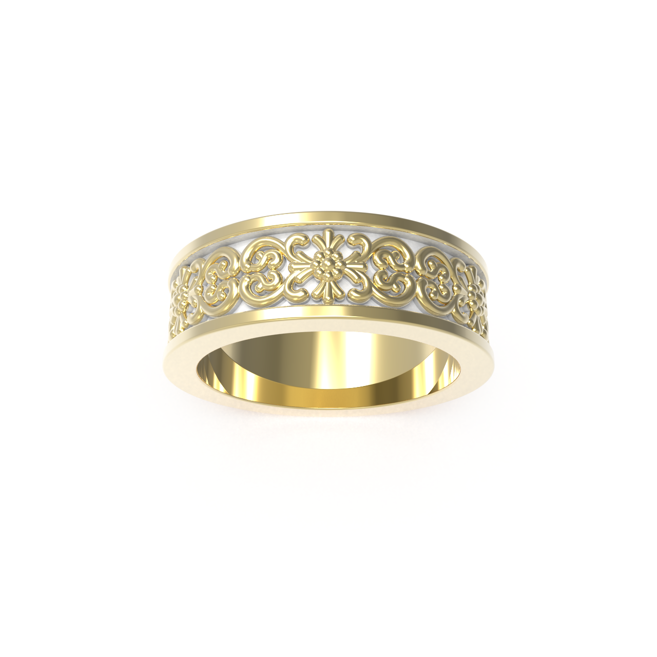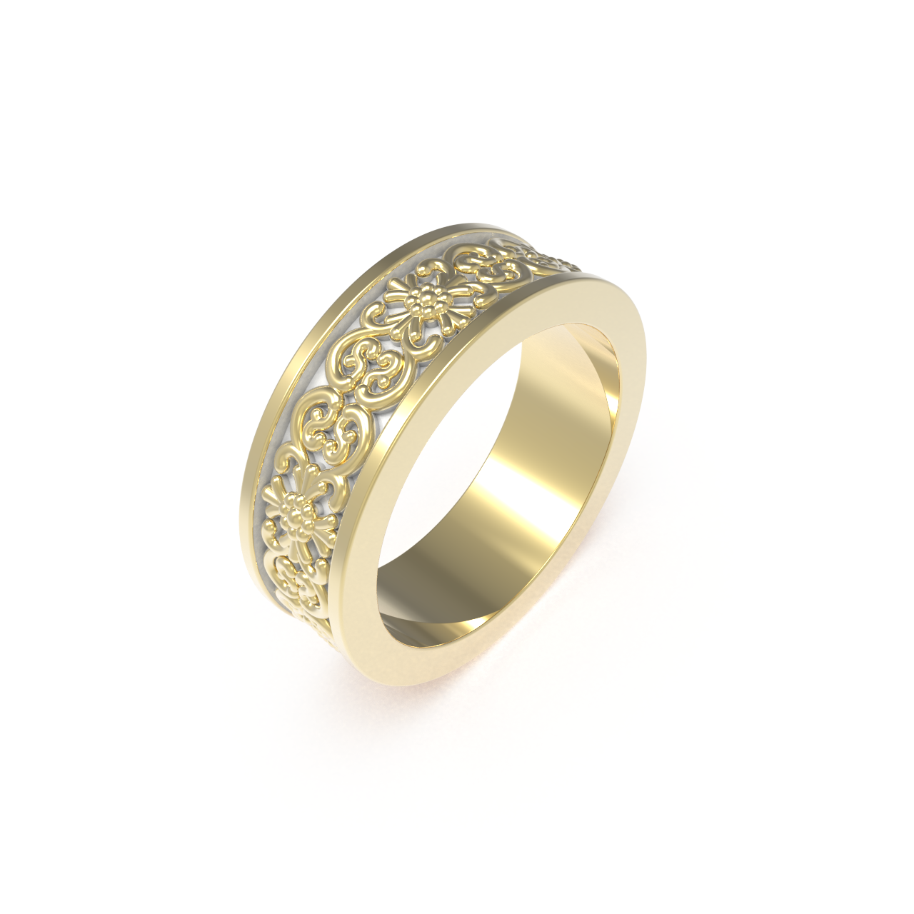 The Solemnity Wedding Ring from our Baroque collection embodies the splendor of classical craftsmanship. This sophisticated band, rendered in gold-plated silver, measures 6.5mm in width with a refined 2mm profile that delivers both presence and wearable comfort. Ornamental engravings inspired by nature's finest forms dance across the surface, celebrating the decorative richness of baroque aesthetics. A timeless testament to commitment, this piece elevates your most cherished moment into an heirloom of enduring elegance and distinction. (Ring width and thickness are based upon a standard 13 ring size, actual ring proportions may vary)